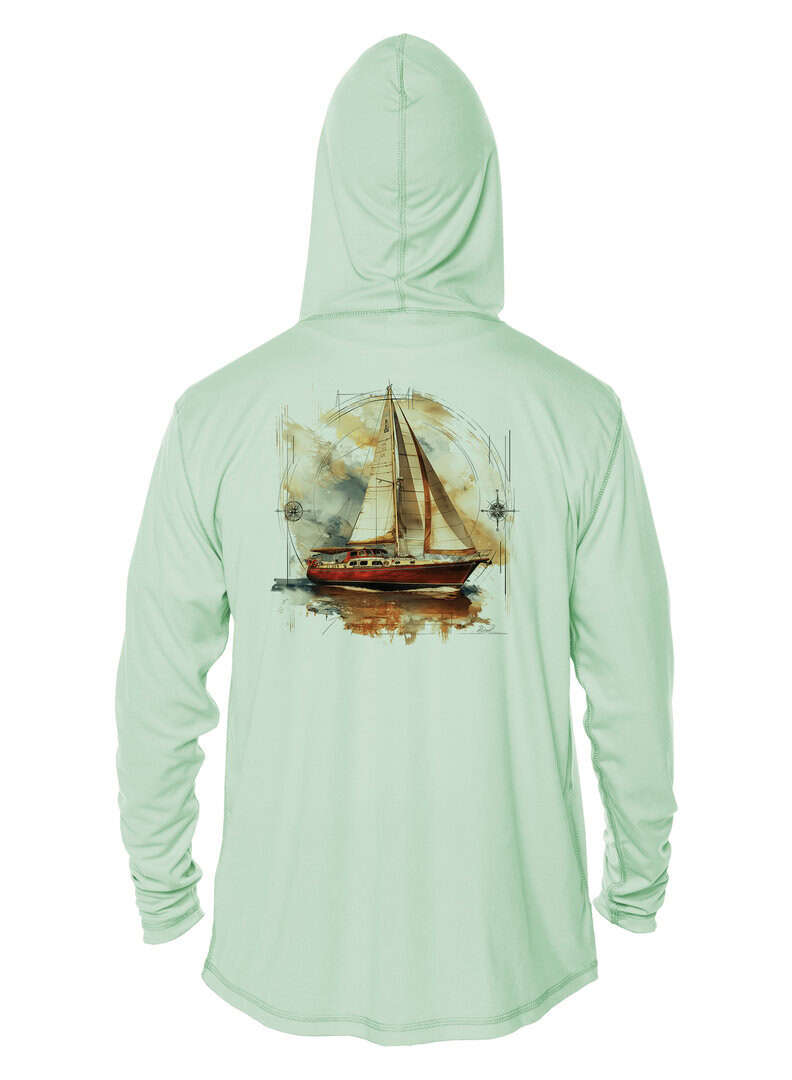 Sunswept Sailing Shirts – Vintage Sailboat Voyage – UPF 50+ Hoodie